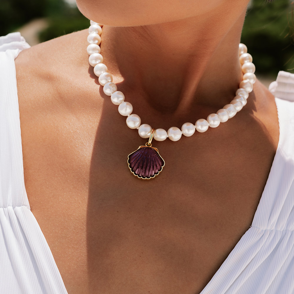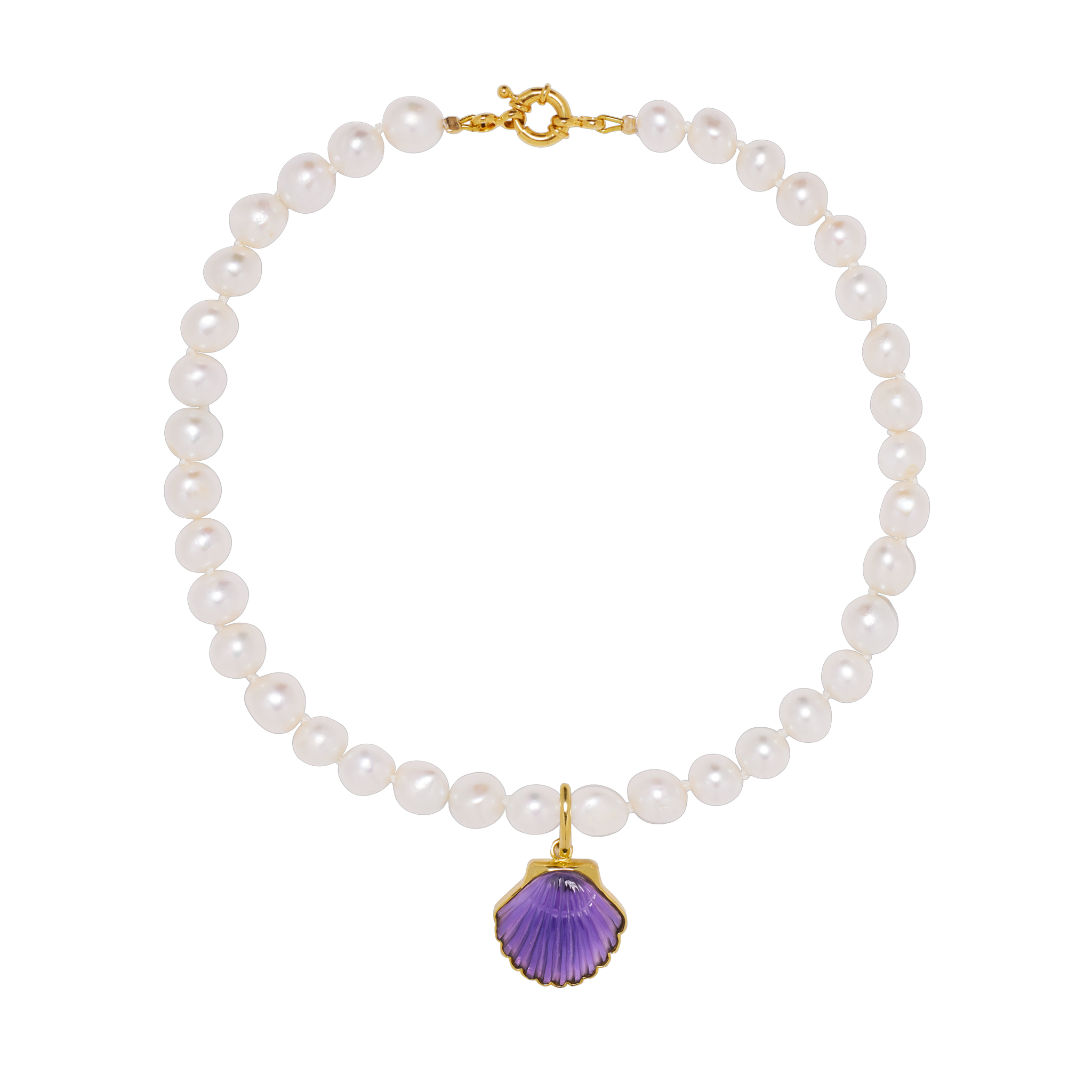 Χειροποίητο μενταγιόν σε 14K επιχρυσωμένο  Ασήμι 925 με αχιβάδα σκαλισμένη στο χέρι σε Φυσικό Αμέθυστο.