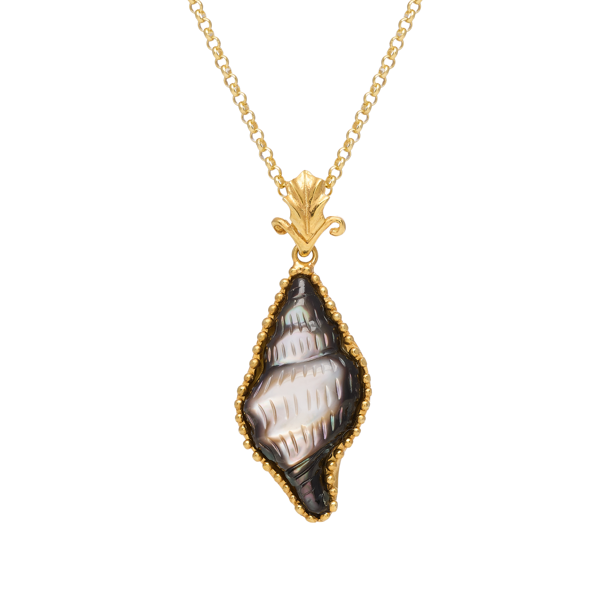 Χειροποίητο Μενταγιόν σε 14Κ Επιχρυσωμένο Ασήμι 925 με σκαλισμένο στο χέρι Κοχύλι σε Mother of Pearl.