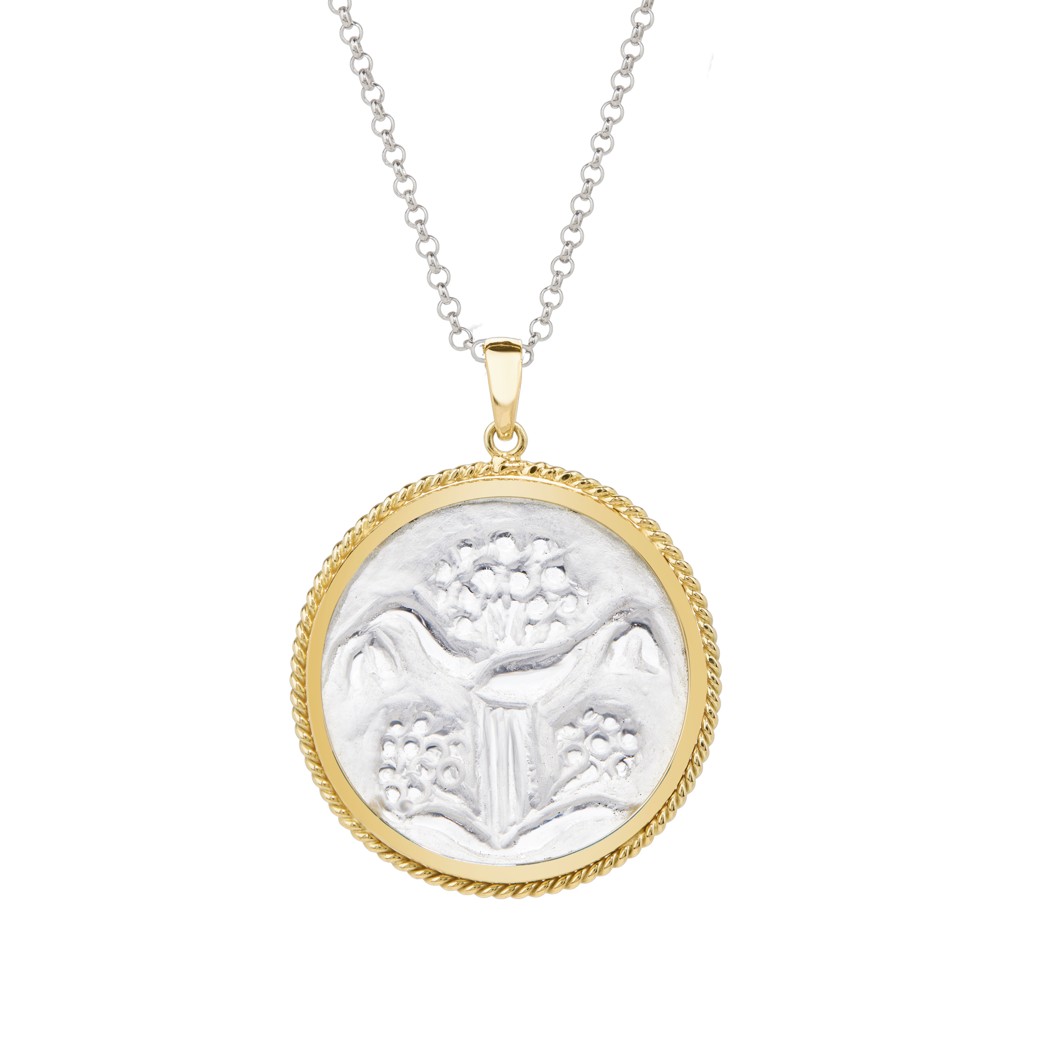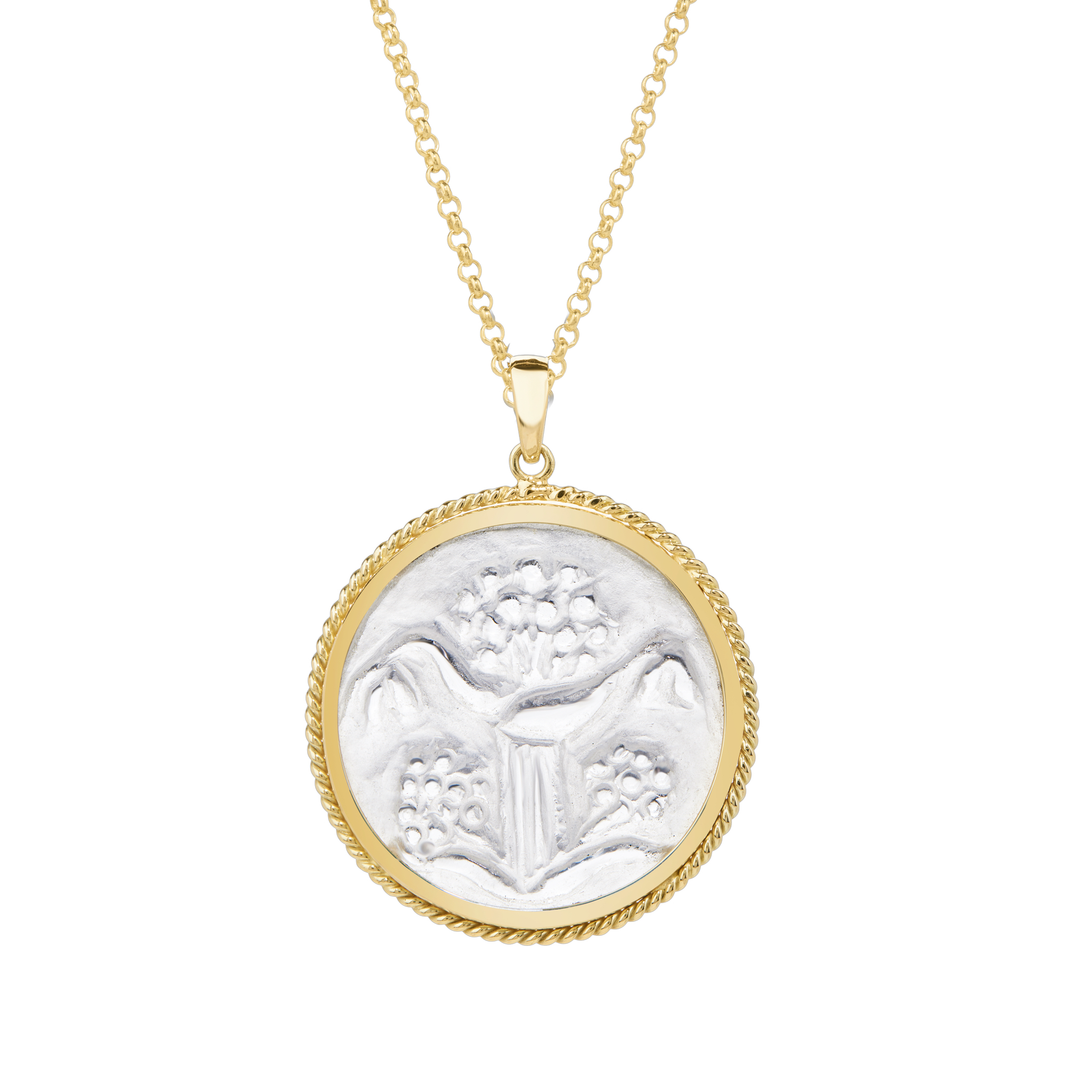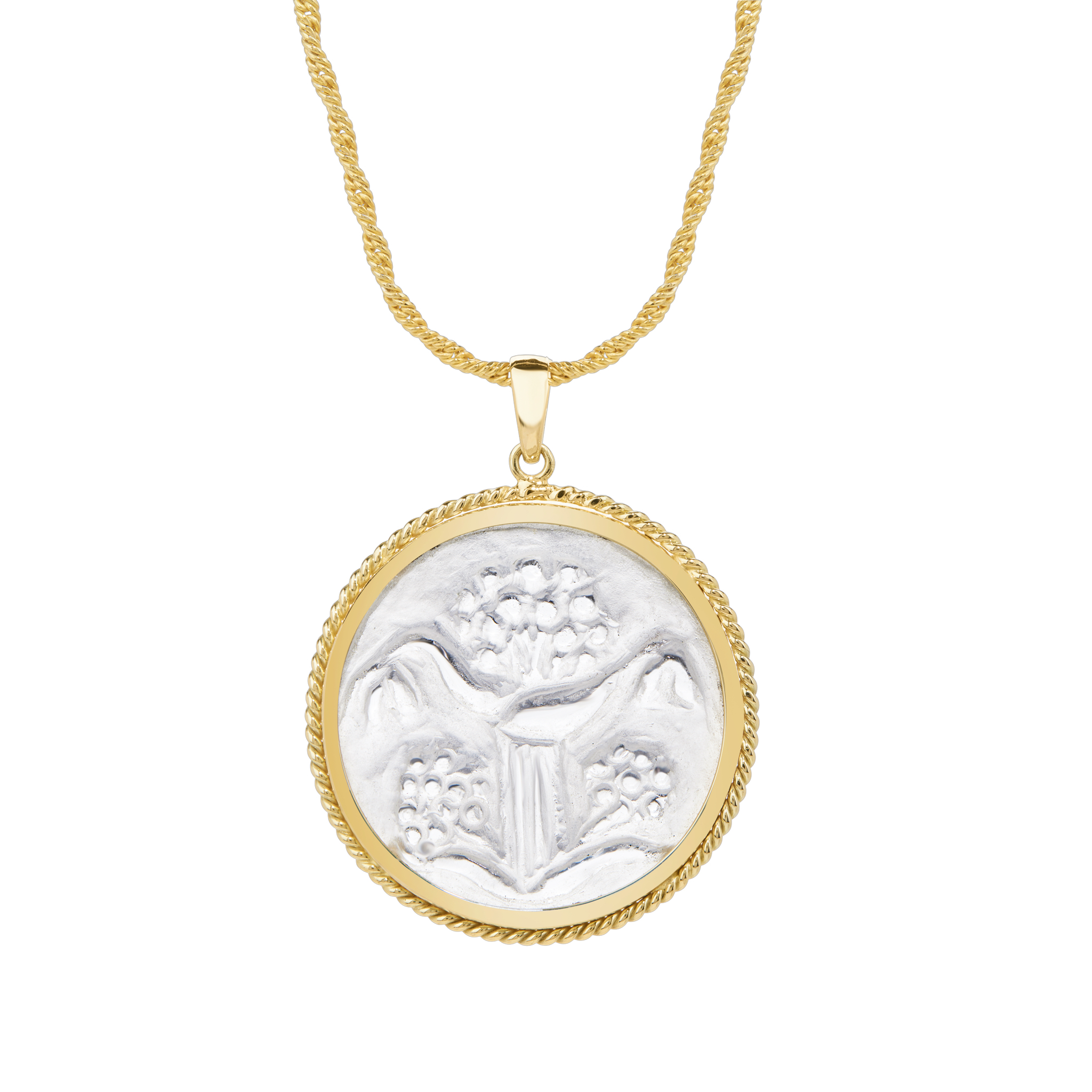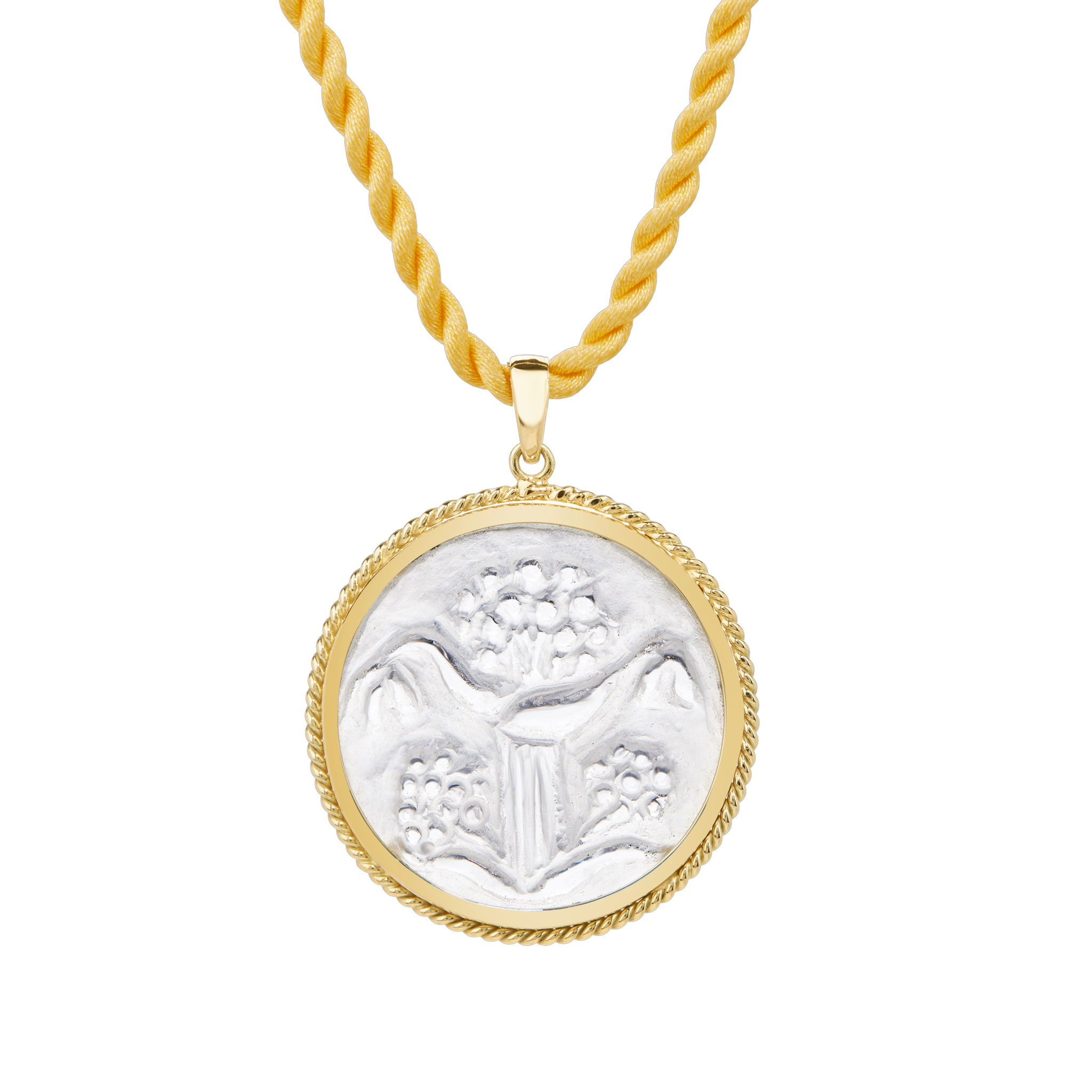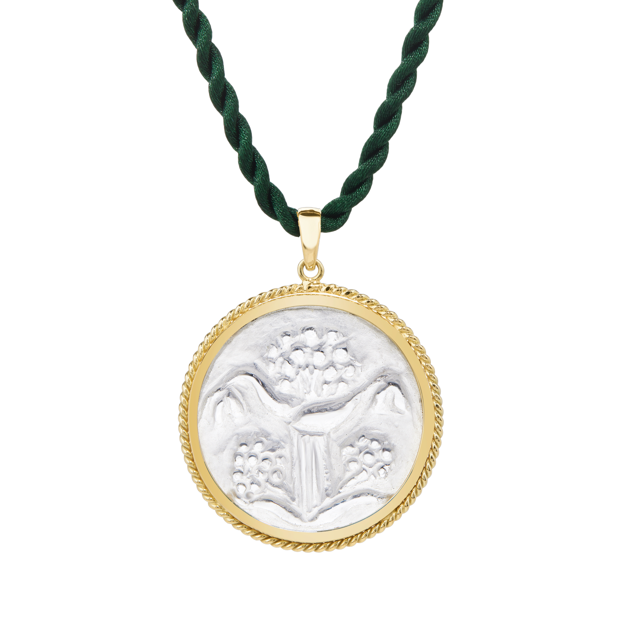 Γούρι Σίλφιον χειροποίητα σκαλισμένο σε ορεία κρύσταλλο, εξώγλυφα (εγχάρακτα) σκαλισμένη πέτρα δεμένη σε κίτρινο χρυσό 14Κ.