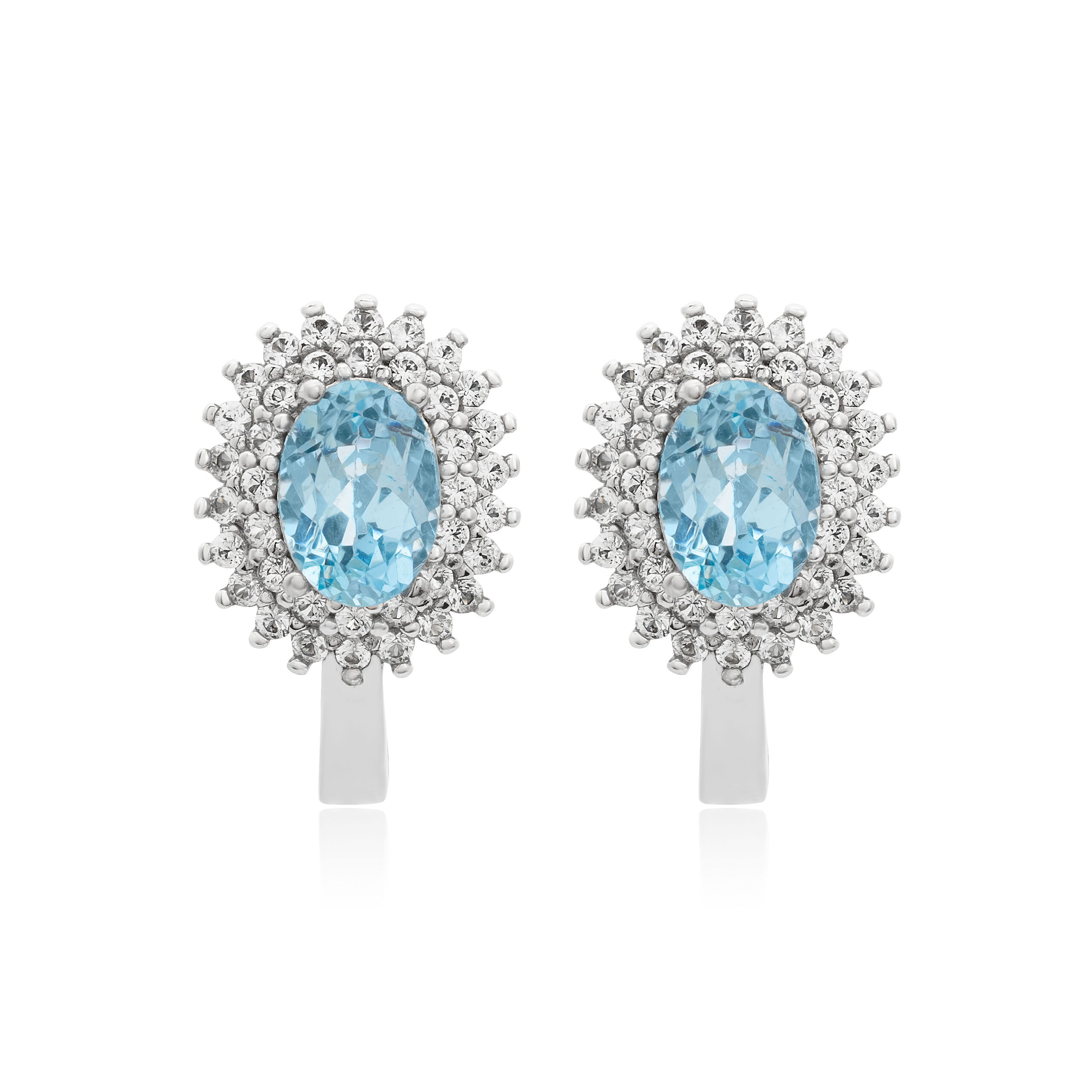 Σκουλαρίκια σε ασήμι 925 και 14Κ λευκό επιχρύσωμα με Φυσικές Άκουαμαρίνες & CZ Zircon .