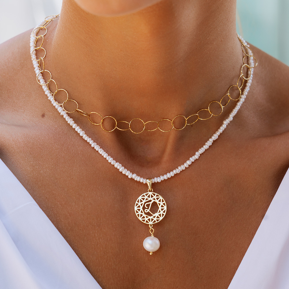 Κολιέ με Φυσικά μαργαριτάρια γλυκού νερού και κούμπωμα  με 14Κ επιχρυσωμένο ασήμι 925.