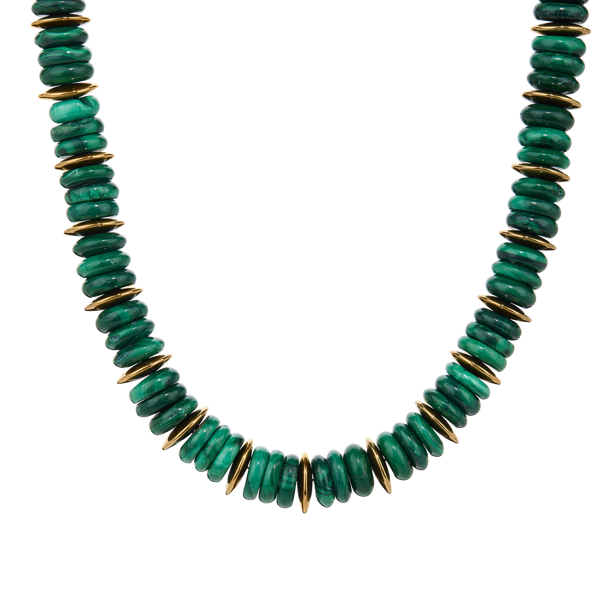 Κολιέ με Φυσικούς Μαλαχίτες και Ροδέλες Αιματίτη