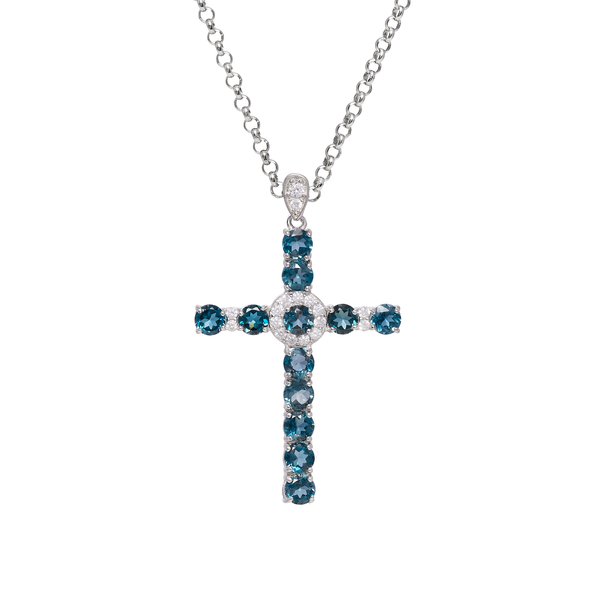 Σταυρός σε ασήμι 925 και 14Κ λευκό επιχρύσωμα με Φυσικά London Blue Τοπάζια & CZ Zircon.