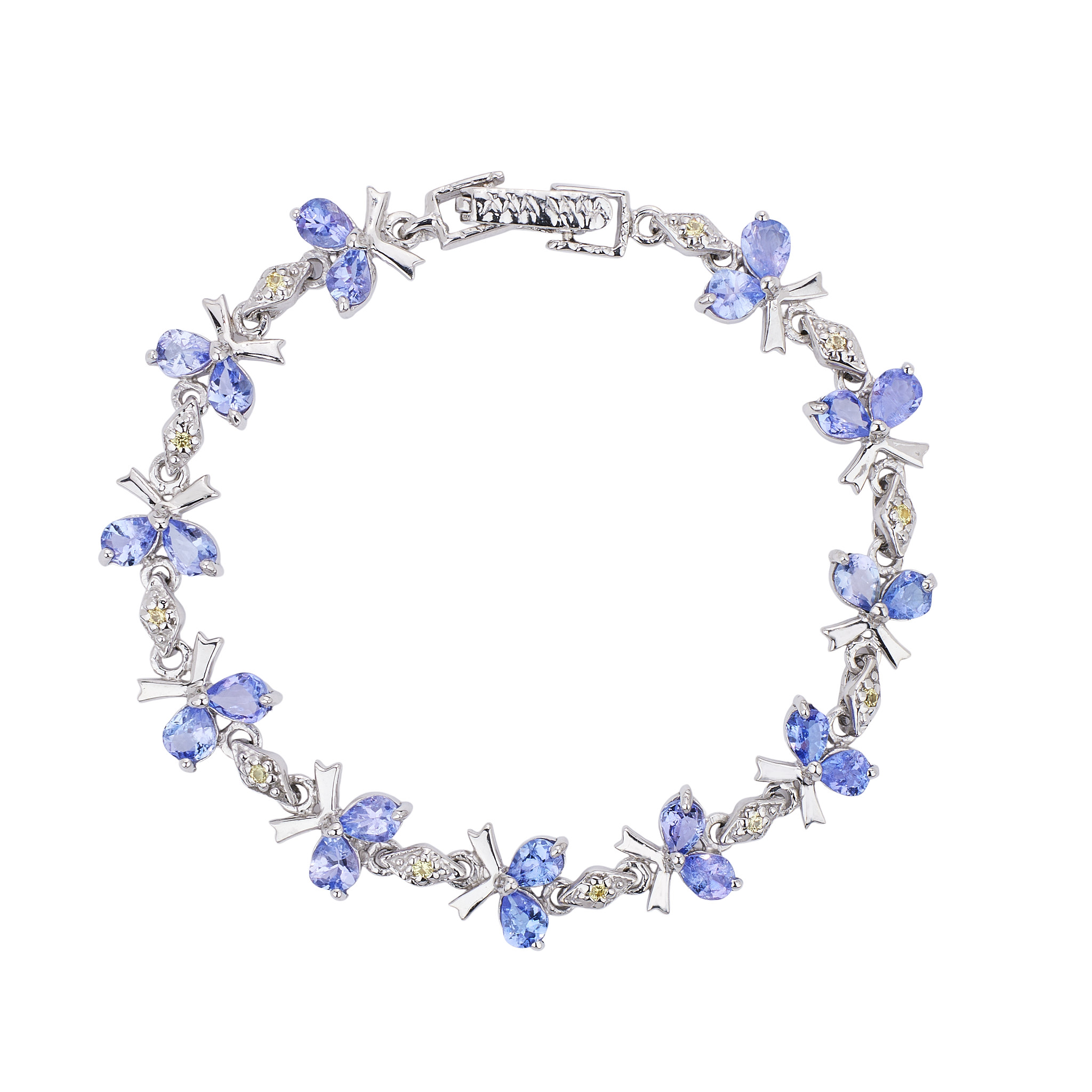 Βραχιόλι σε 14K λευκό επιχρυσωμένο Ασήμι 925 με Φυσικούς Τανζανίτες & Ζαφείρια.