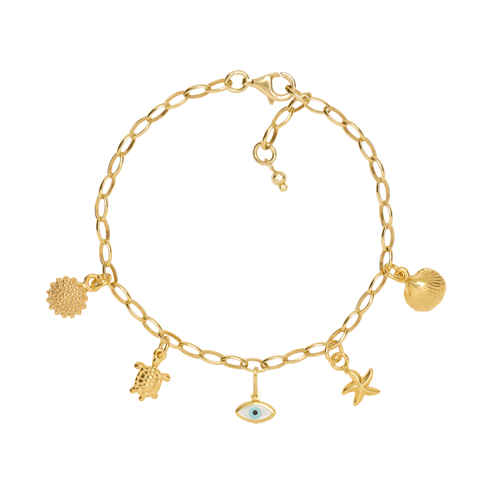 Handmade Bracelet in 14K Golden Plated 925 Sterling Silver with Summer Charms.