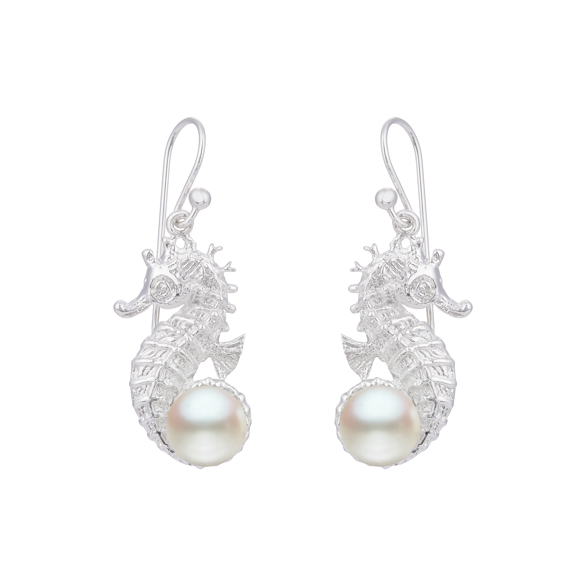 Earrings in 14K White Gold Plated 925 Sterling Silver with Natural Fresh Water Pearls.