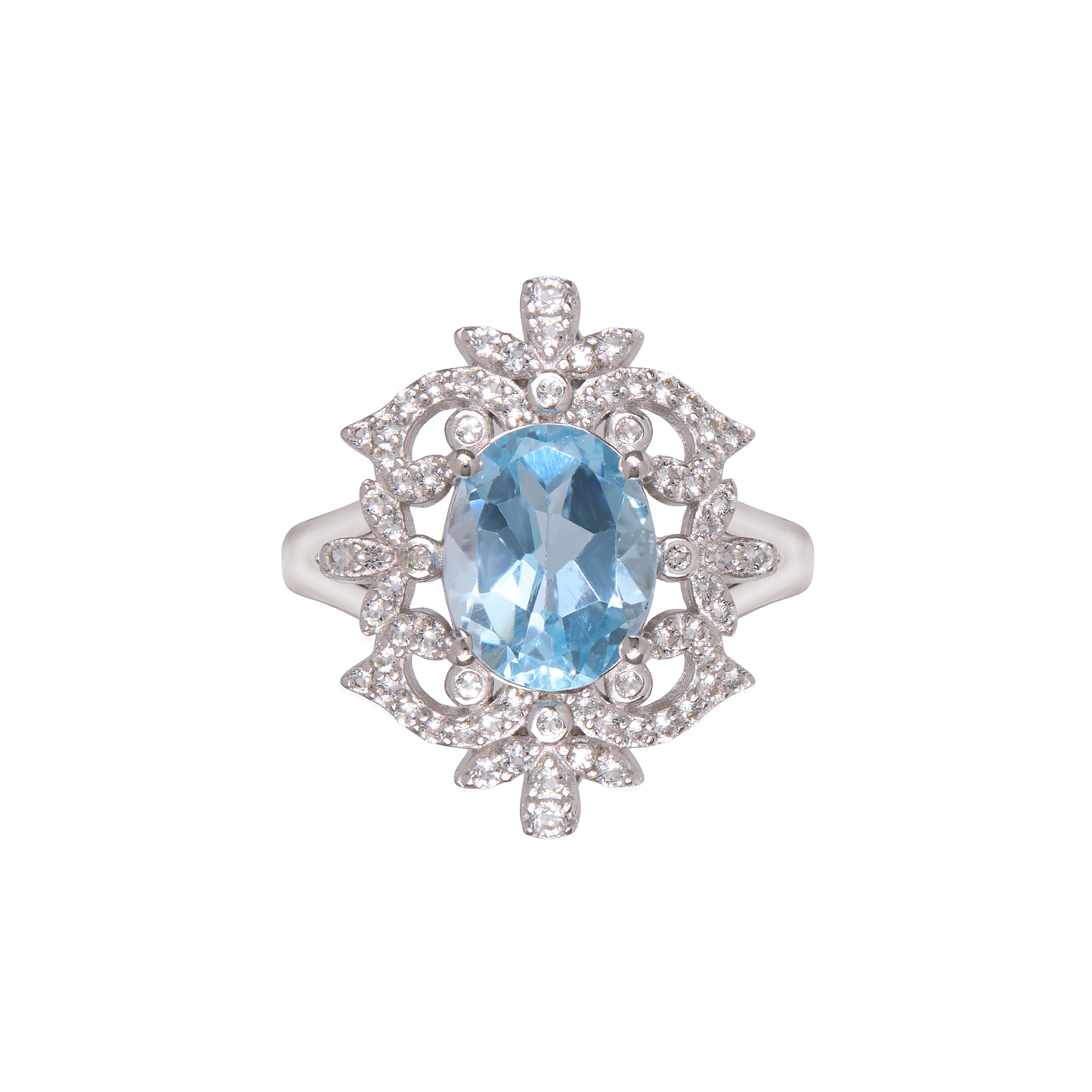 Ring in 14K White Gold Plated 925 Sterling Silver with Natural Topazes.