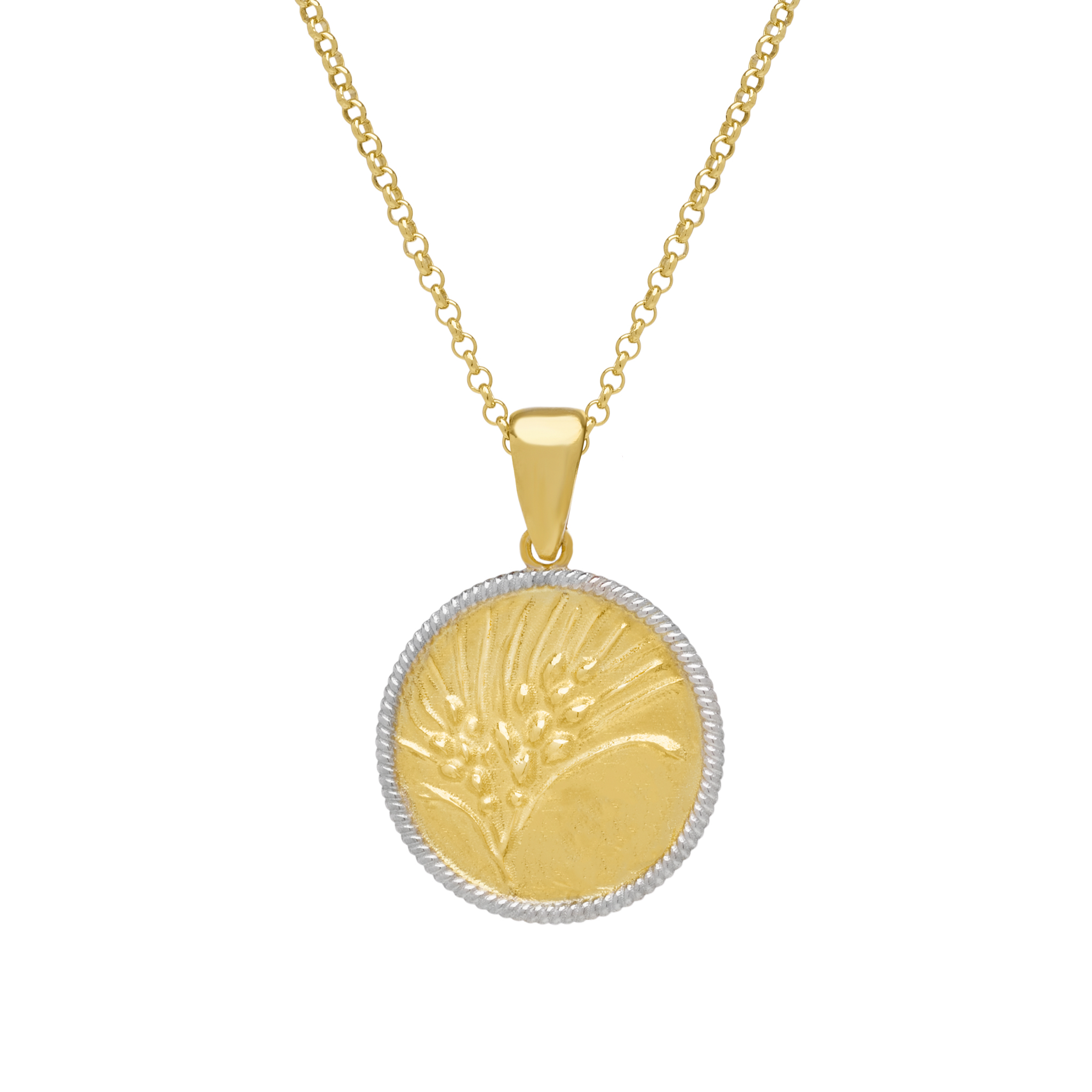 Wheat Pendant in 14K Golden Plated Sterling Silver 925 and Platinum Plated Sterling Silver 925 hoop.
